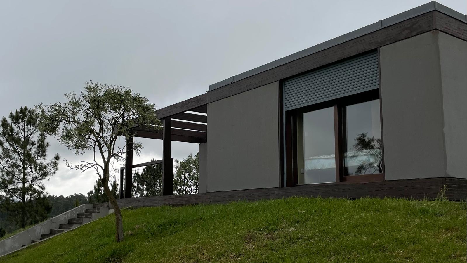 propriedade construída à base de madeira com traços modernos, destacando-se